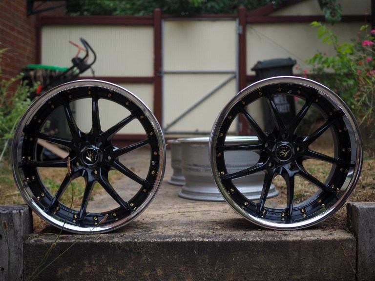 The list of what has been bought, what has been ordered and what has been done is actually pretty long. I decided to try and replace everything I could replace within reason, so prior to the car being shifted to Rob’s shed I bought new arms, new brake lines and most of a new fuel system. The new tank, pump, lines etc have all been fitted along with all the new ZSS arms in the rear. A new Cusco front strut brace is in (after some panic when it initially refused to drop on) and some new interior toys too. There is a new ZSS exhaust installed, and some parts from Auto Collect Storm ready to go as well. And on top of all of that, I’ve started to refurbish my wheels.